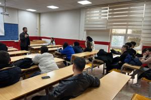 Toplantıda, Öğrenim Hareketliliği, Staj Hareketliliği ve Anlaşmalı Üniversiteler hakkında öğrencilere bilgi verildi.